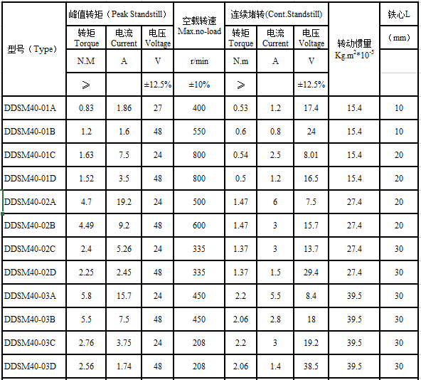DDSM40 series brushless direct drive motor performance indicators