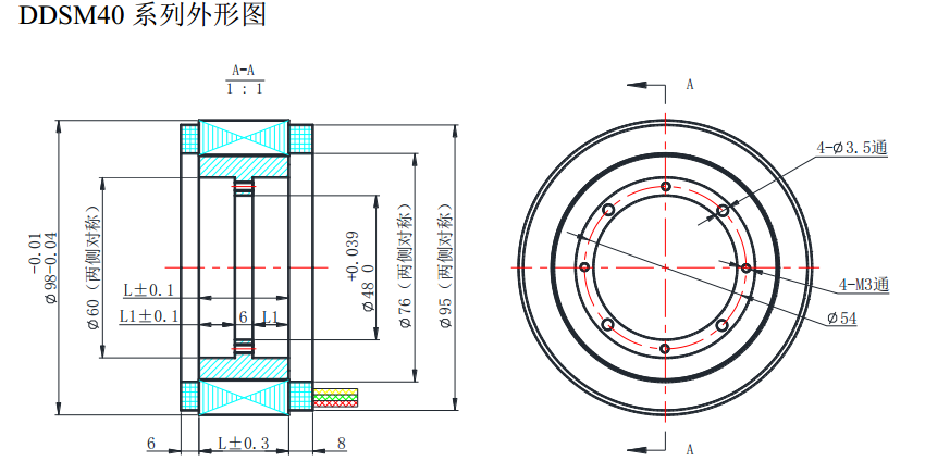 DDSM40 series brushless direct drive motor outline