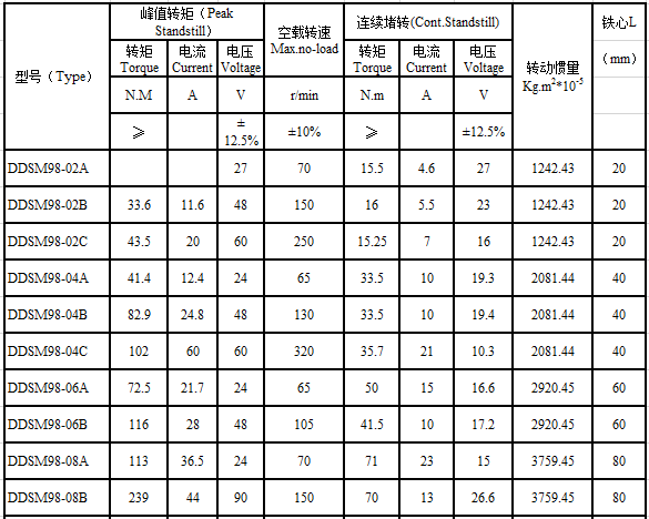 DDSM98 series brushless direct drive motor performance indicators