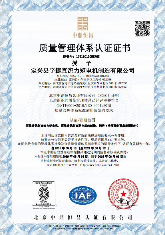 河北宇捷電機(jī)科技有限公司通過質(zhì)量管理體系認(rèn)證 |
