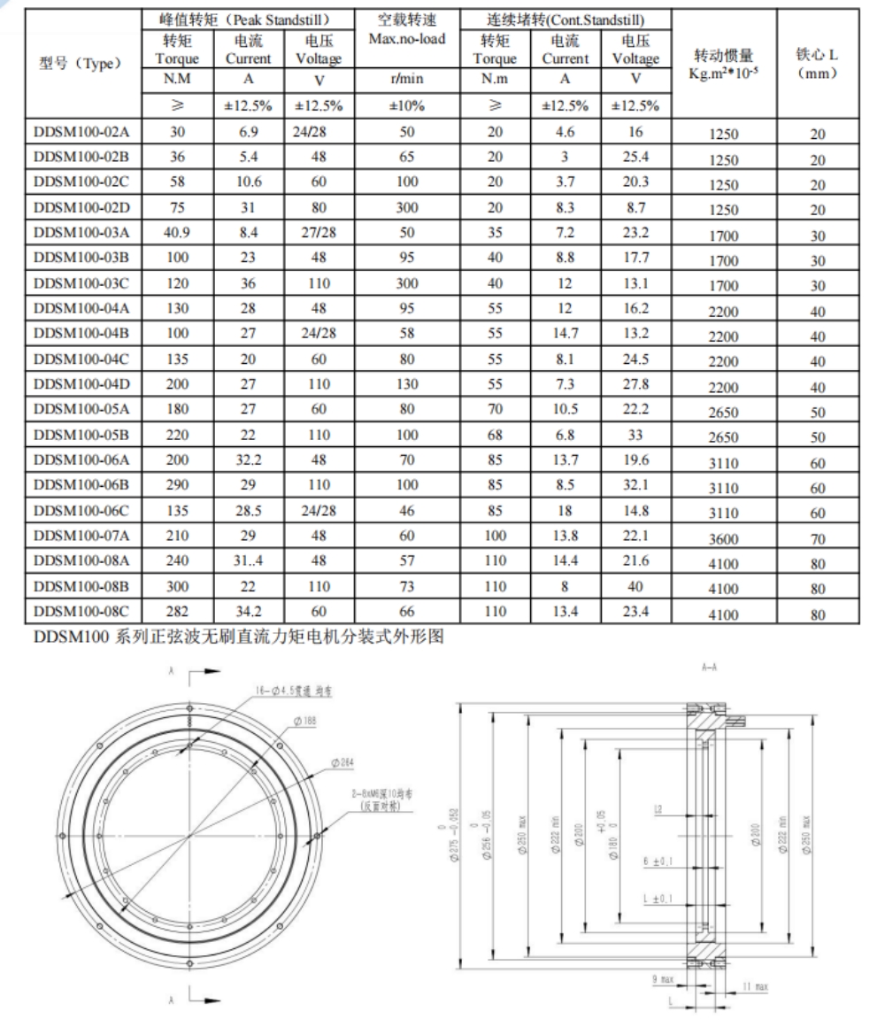 DDSM100系列無(wú)刷直流力矩電機(jī) |